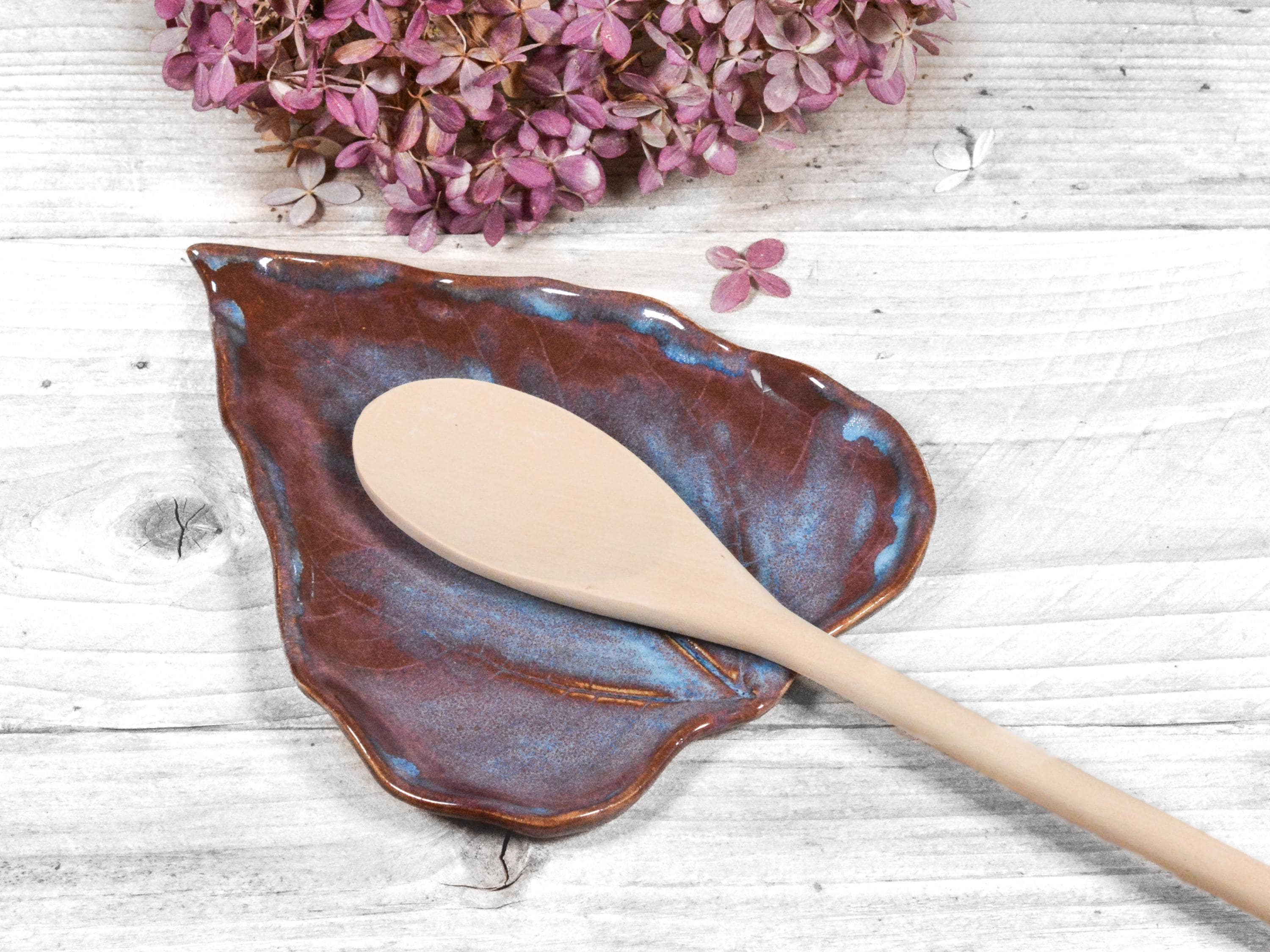 MEASURES about 7” stem to tip, by 5½” at the widest. A large spoon rest for your stove or counter. Or use as a small plate, tray.
