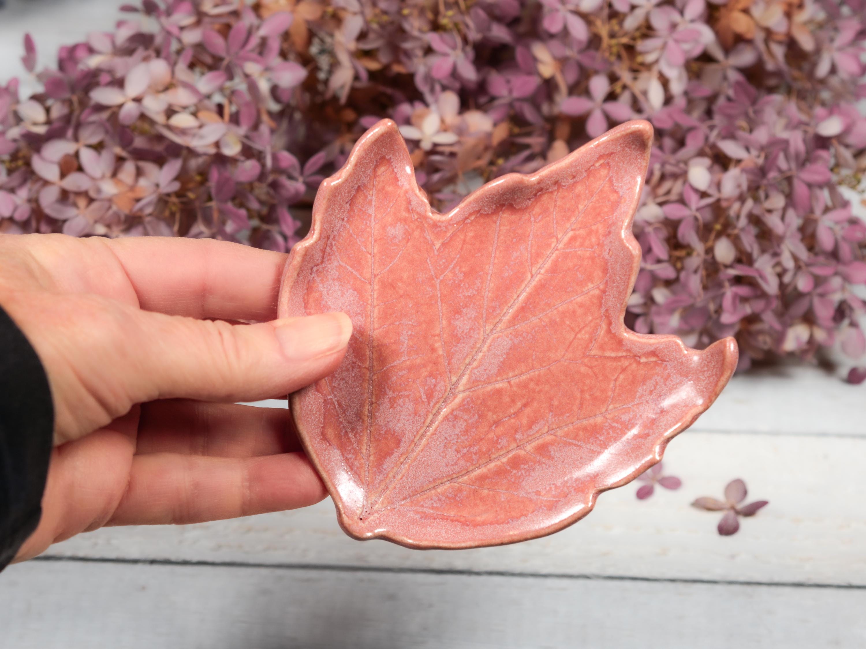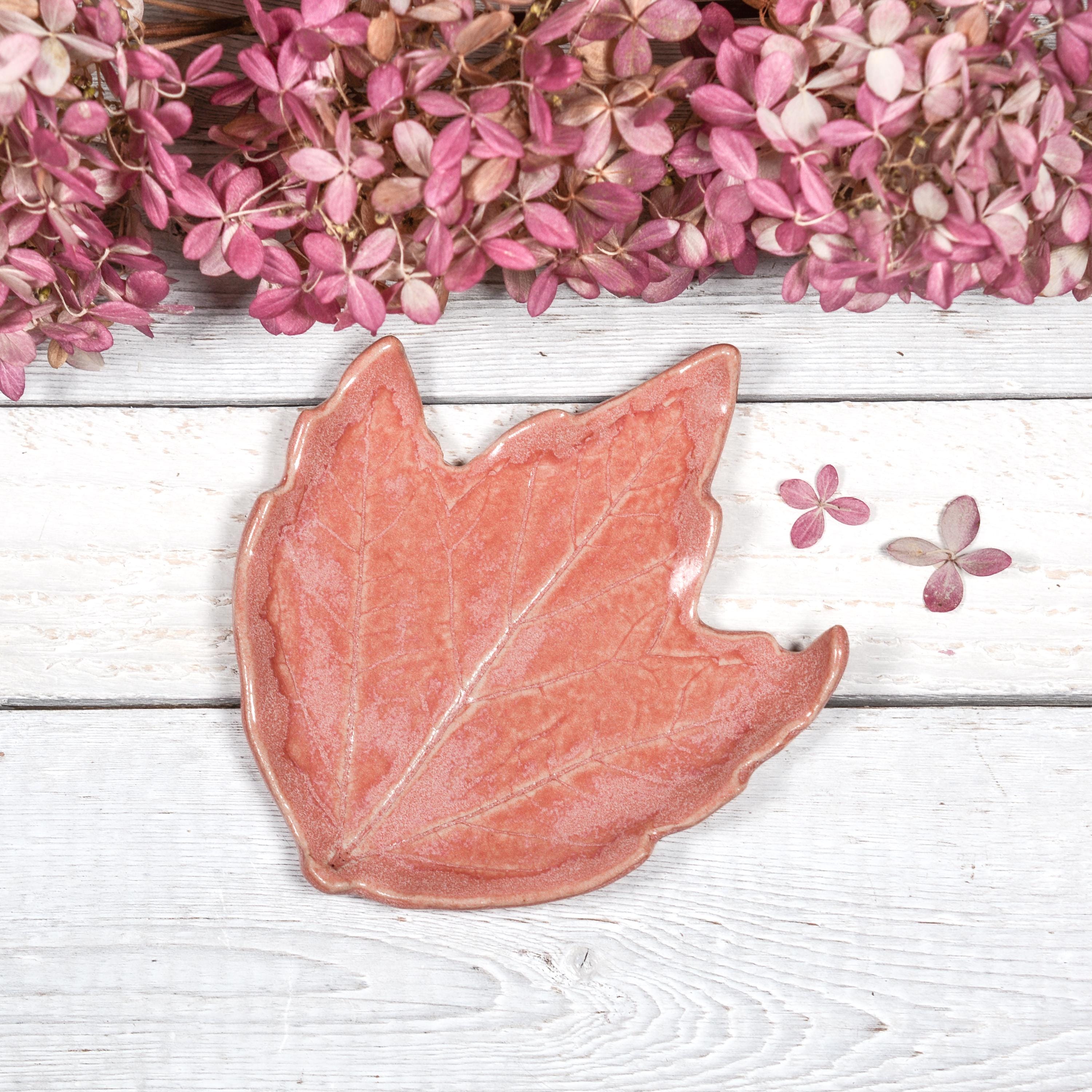 Add this pretty leaf to your home as a piece of art, or use as a spoon/tea bag rest or ring dish. Glazed in layers of pretty rose pink.