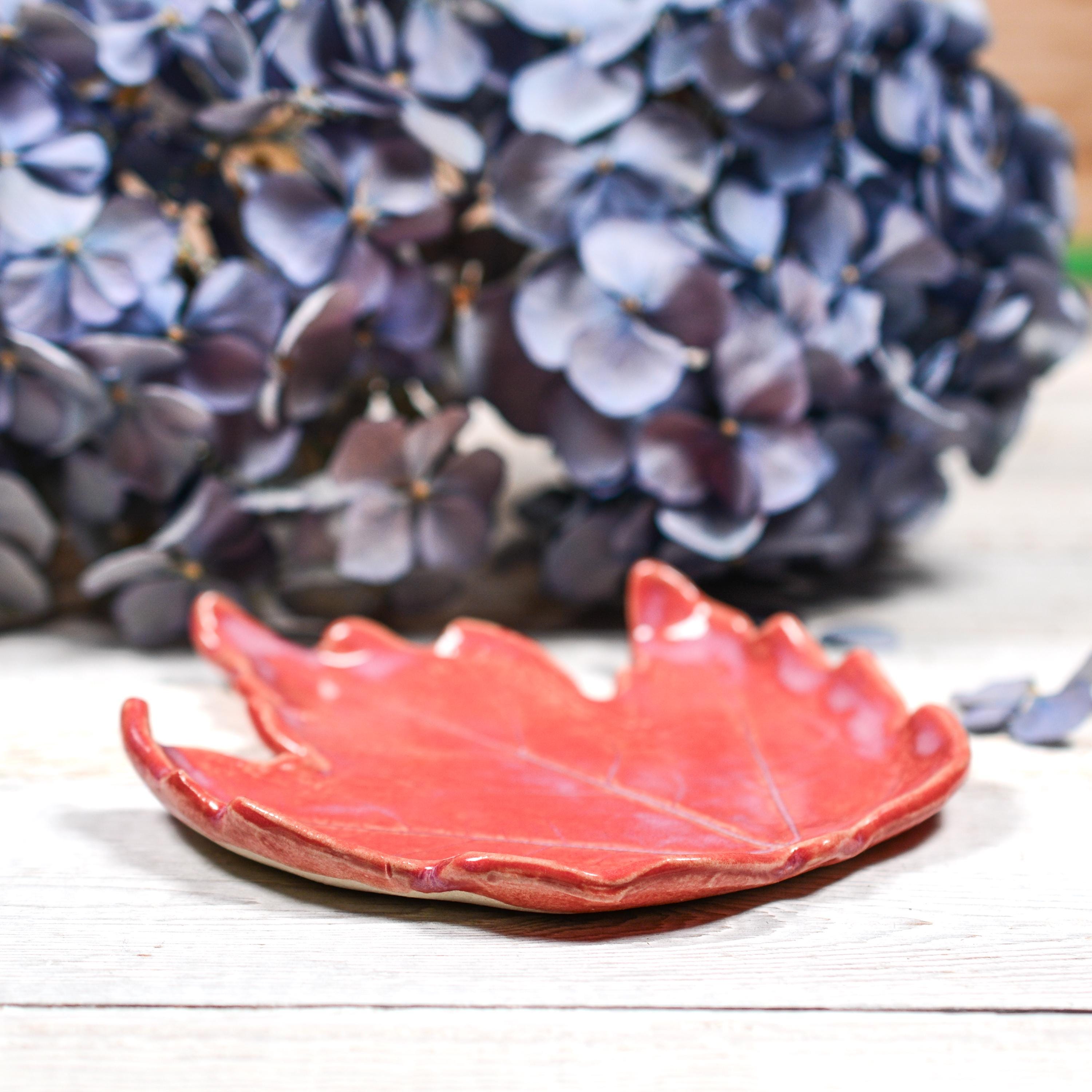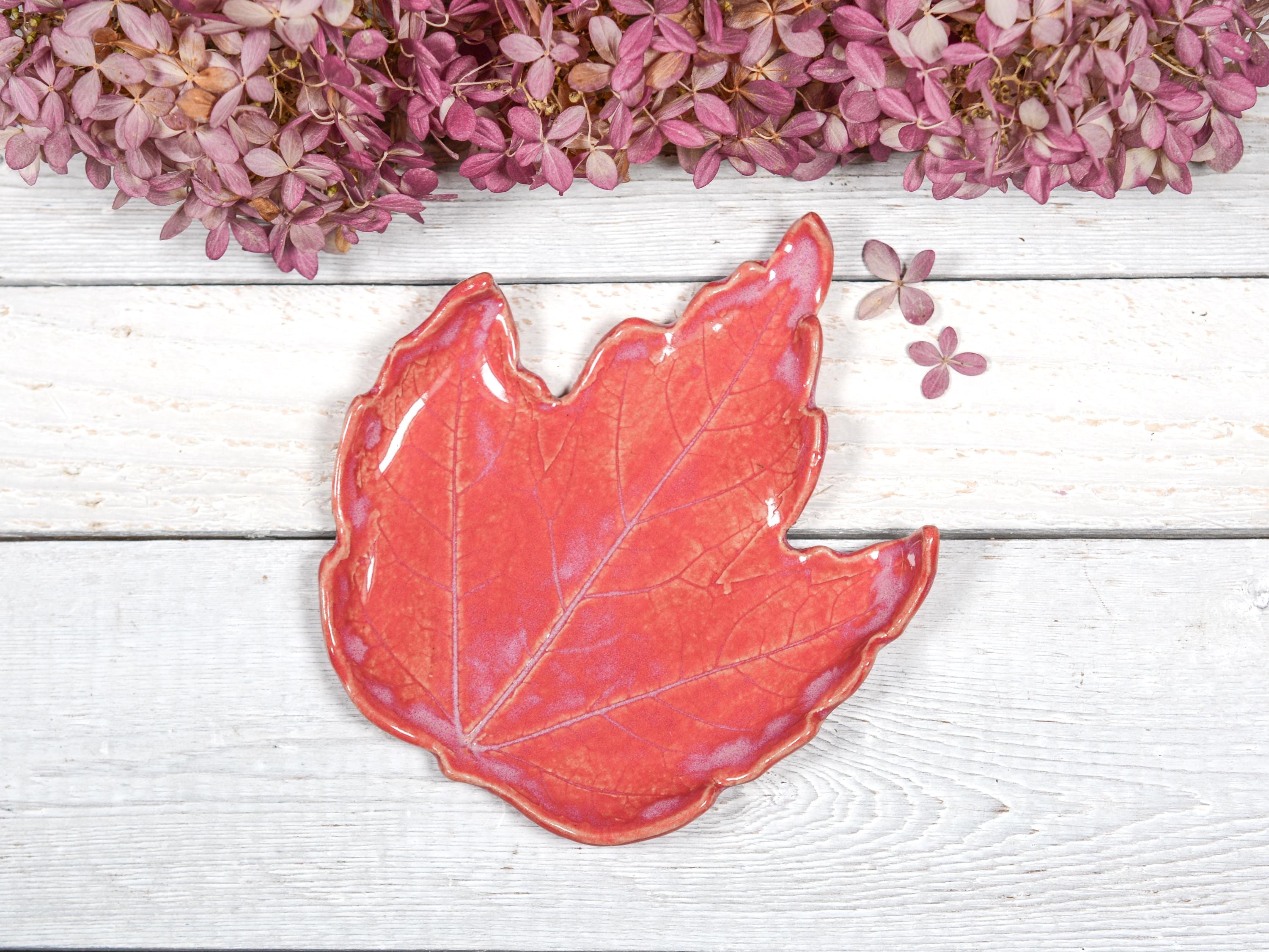 HANDMADE with Washington clay and food safe glazes from a maple leaf out of my garden.