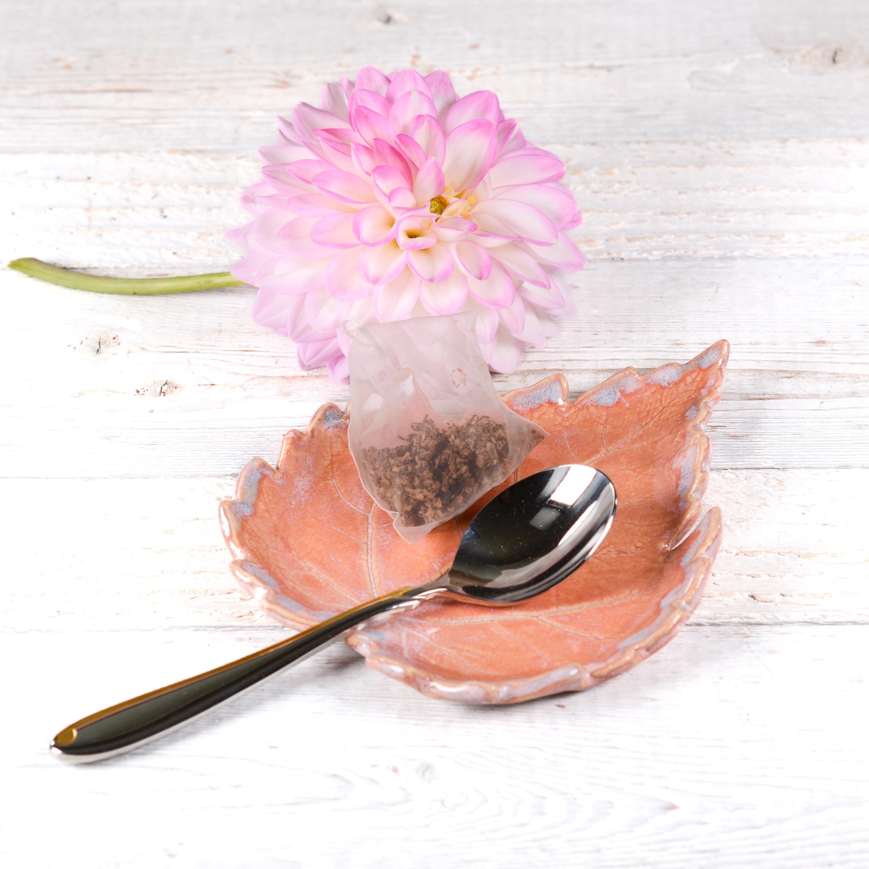 Brighten up your home or kitchen with this colorful maple leaf. A unique piece of art that can be used as a spoon rest , tea bag rest or small utensil holder. Also makes a very pretty jewelry or trinket dish.