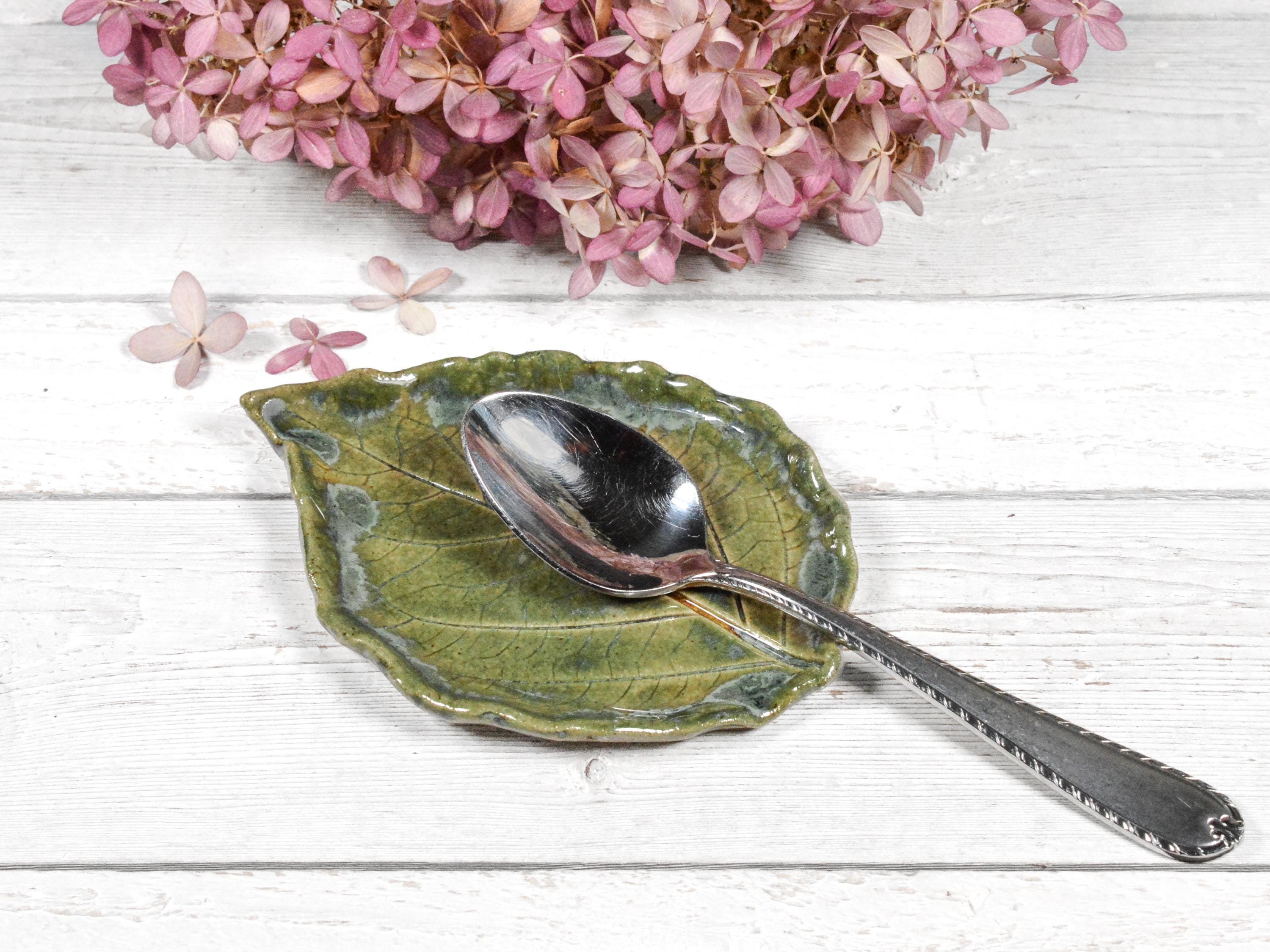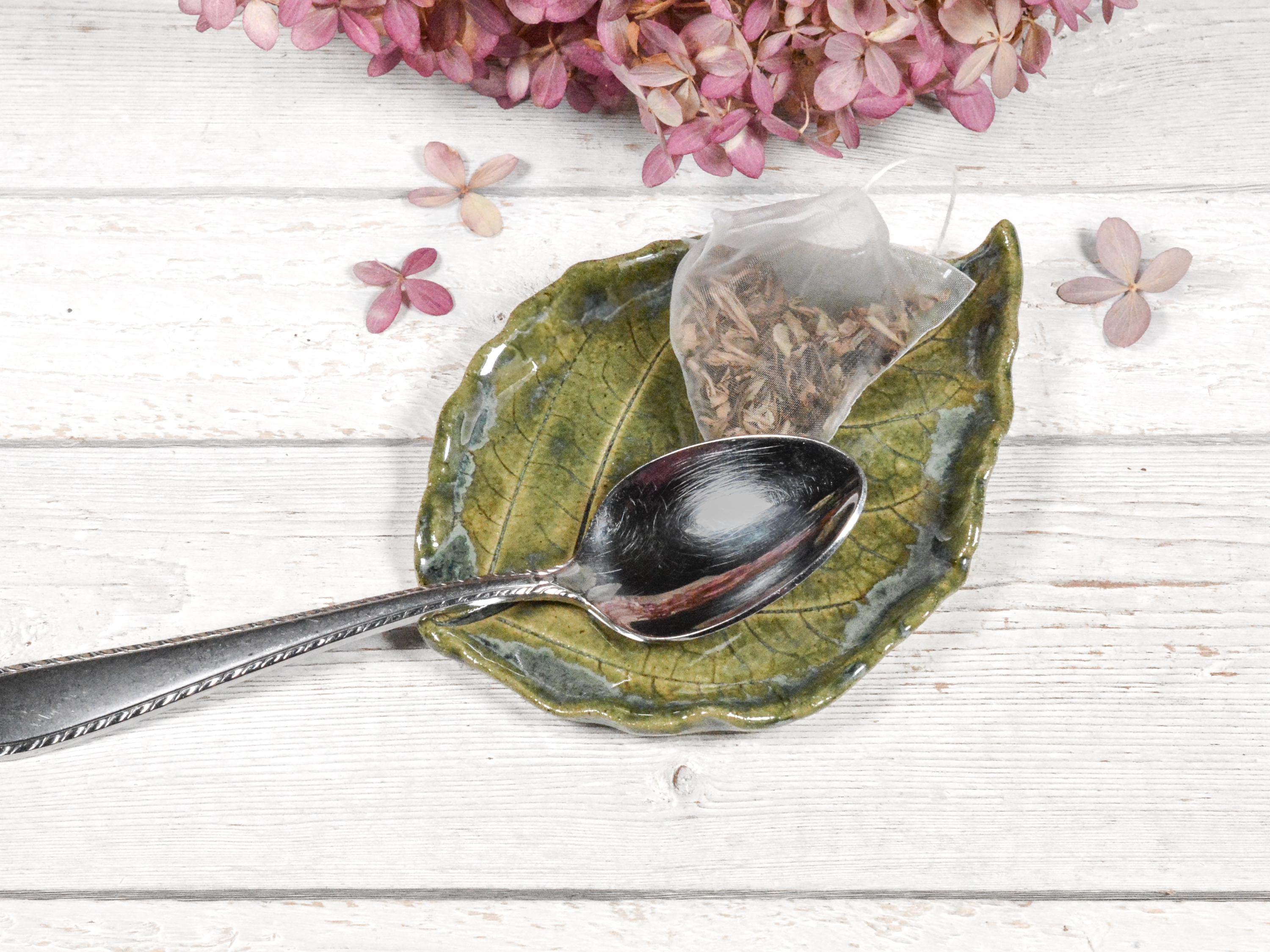 🍃This small leaf is just big enough to hold your tea bag and teaspoon.