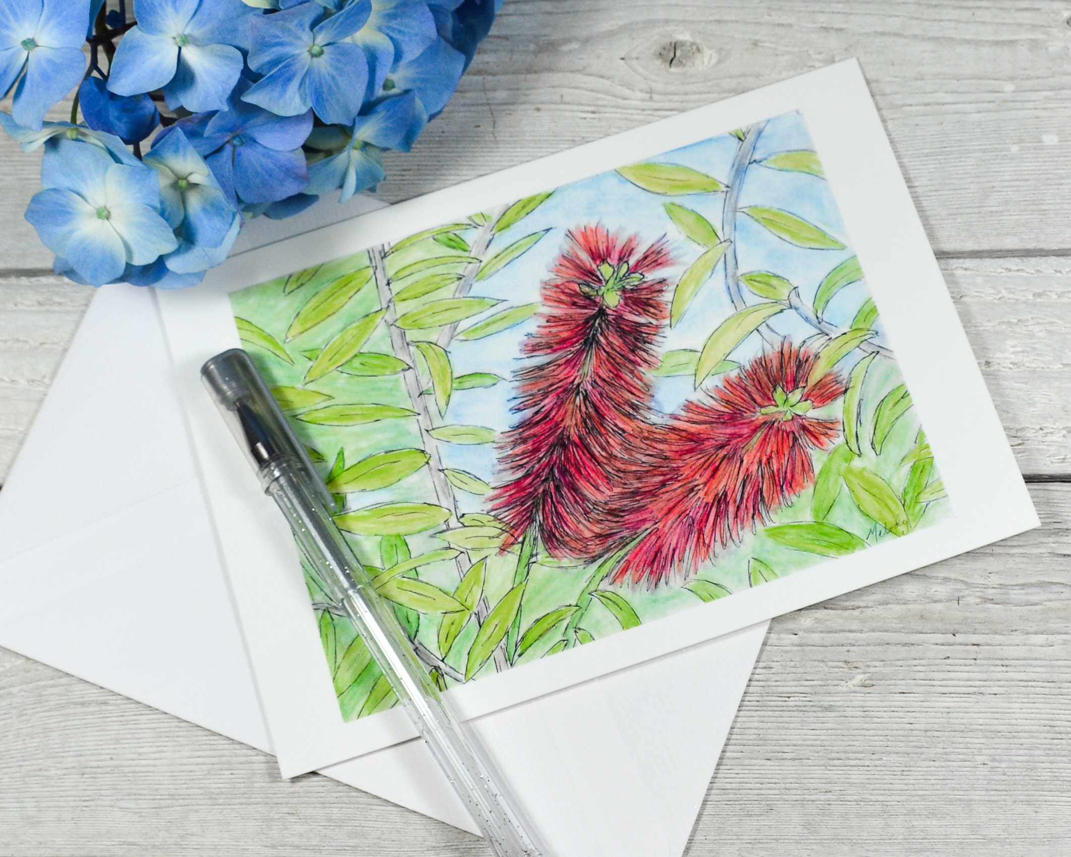 “Bottlebrush” a bright red bloom - 7”w x 5”h