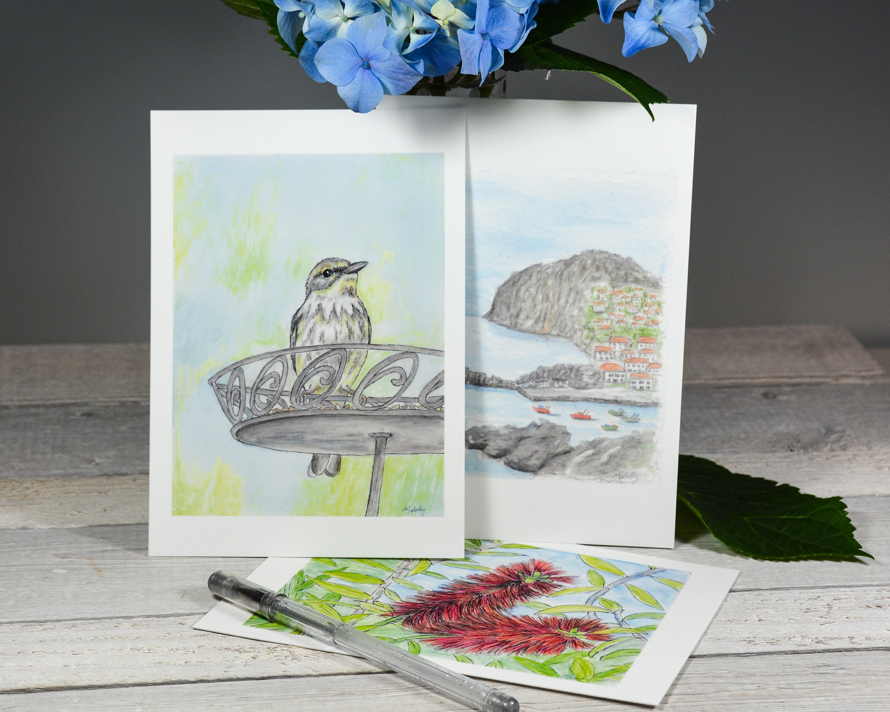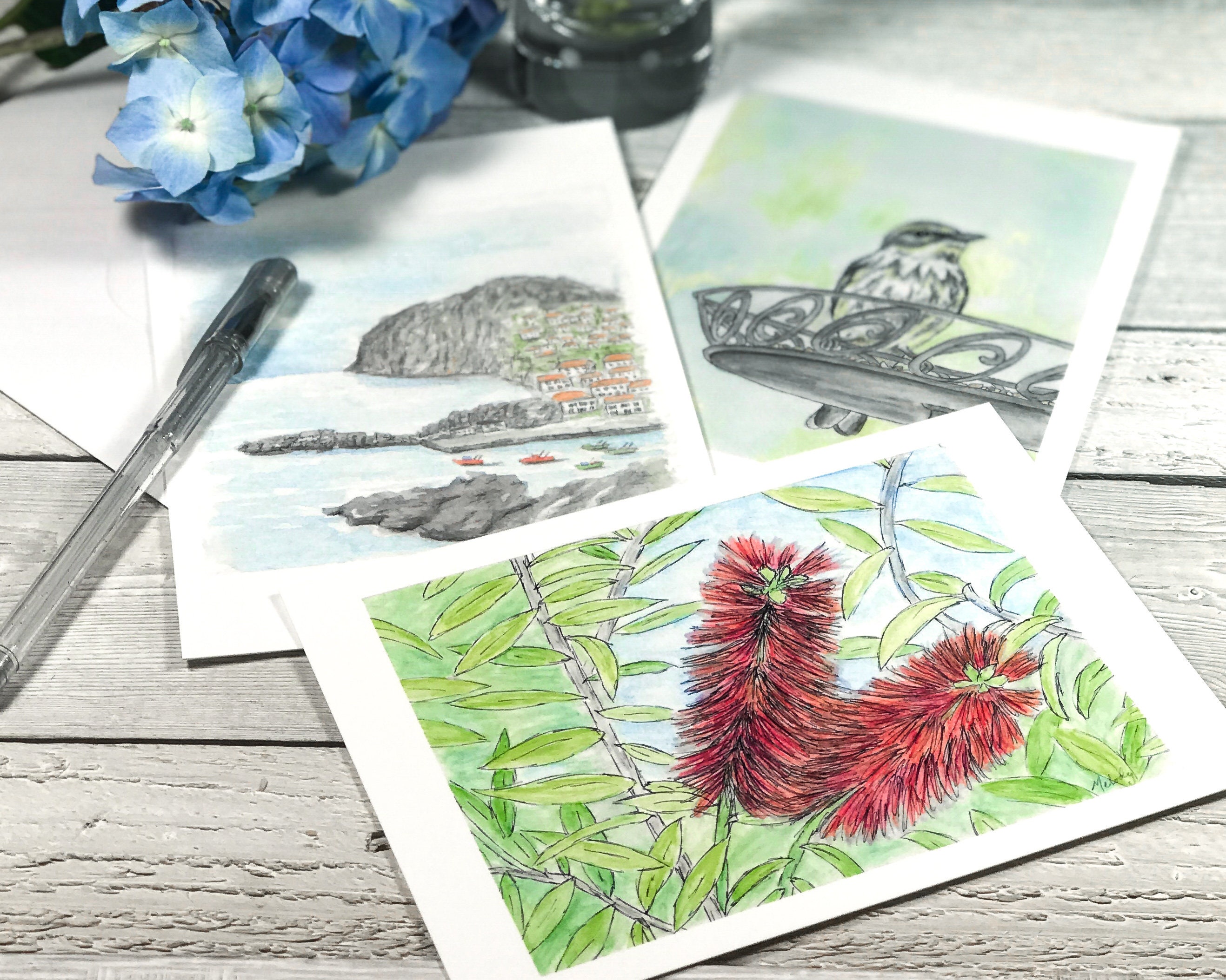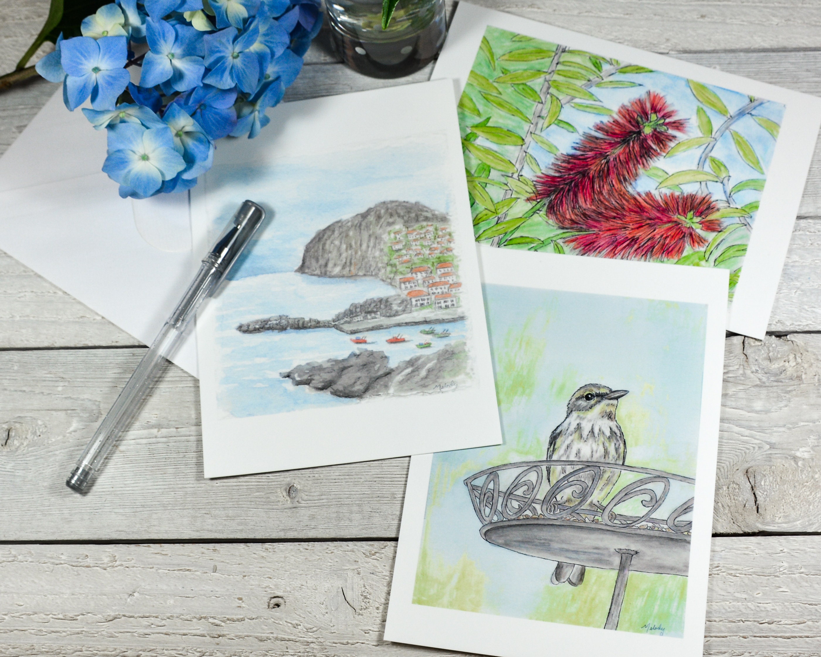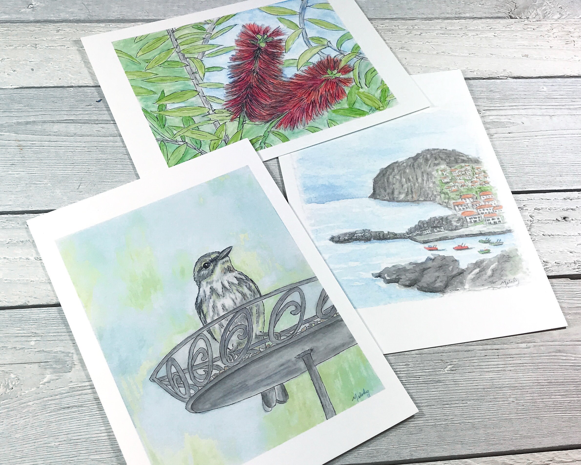Three lovely art print postcards of my original watercolours.