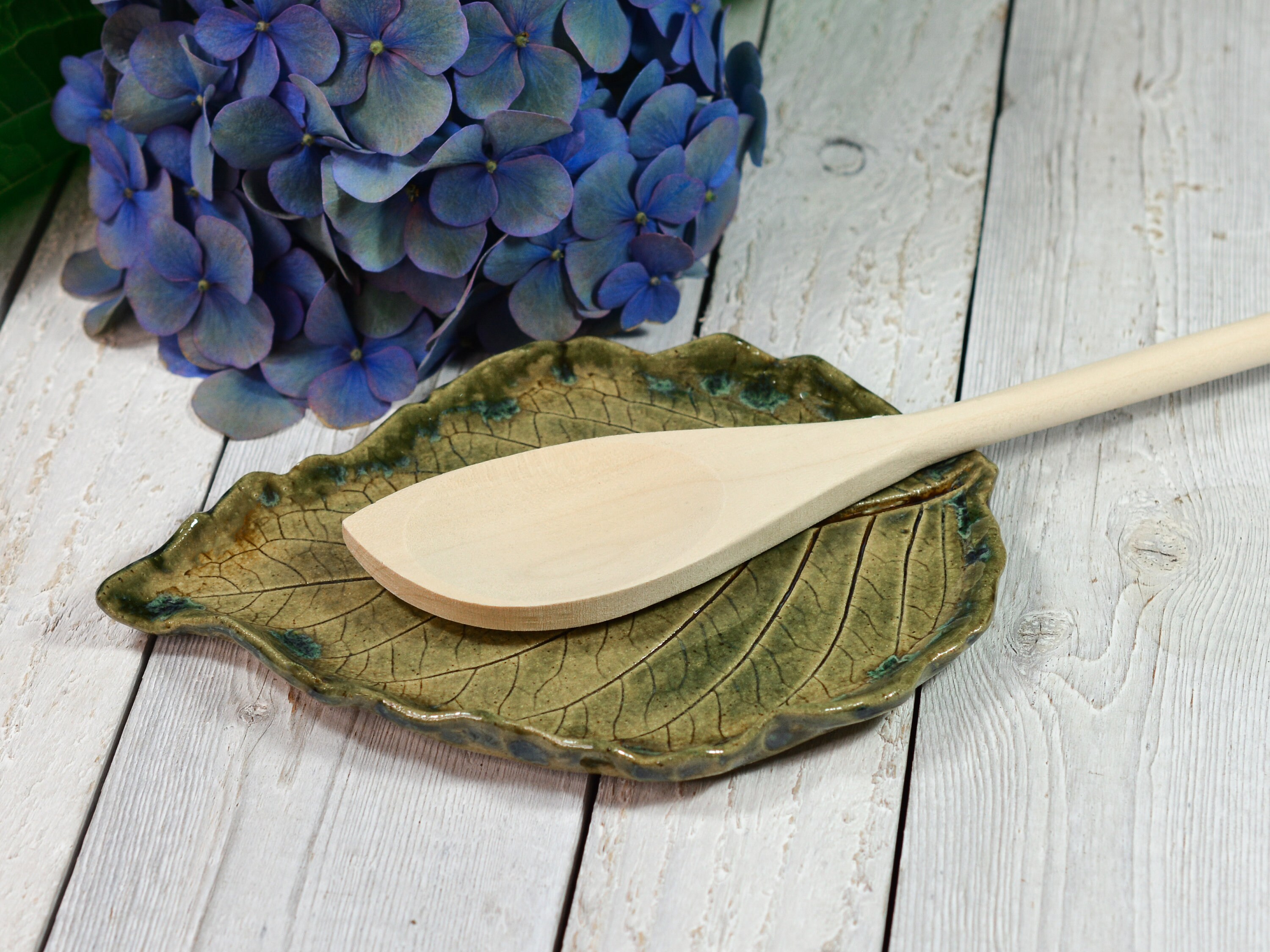 A functional piece of art, designed to be a large spoon rest, but would also make a unique appetizer plate.